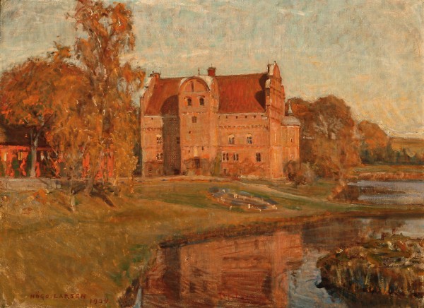 Hugo Larsen: Hesselagergaard en efterårsdag, 1924, olie på lærred, 45 x 62 cm. Privateje. Foto: Bruun Rasmussen (www.bruun-rasmussen.dk).