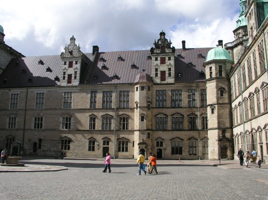 Fra gården på Kronborg. Særudstillingen fandt sted bag de tre vinduer på første sal til venstre for det lille trappetårn i midten af billedet.