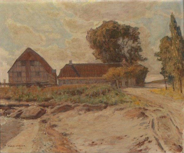 Hugo Larsen: Pakhuset i Lundeborg, 1926. Olie på lærred, 51 x 62 cm. Foto: Bruun Rasmussen (www.bruun-rasmussen.dk). Ejer: Torsten L. Clausen.