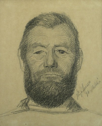 Hugo Larsen: Mandsportræt, betegnet 96, Skelskør. Blyant på papir, 20,5 x 18,5 cm. Privateje.